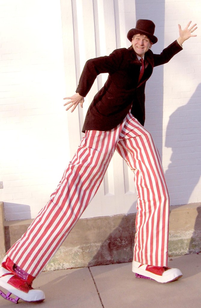 He’s tall. He’s very tall. And then he puts on his stilts and gets even taller.